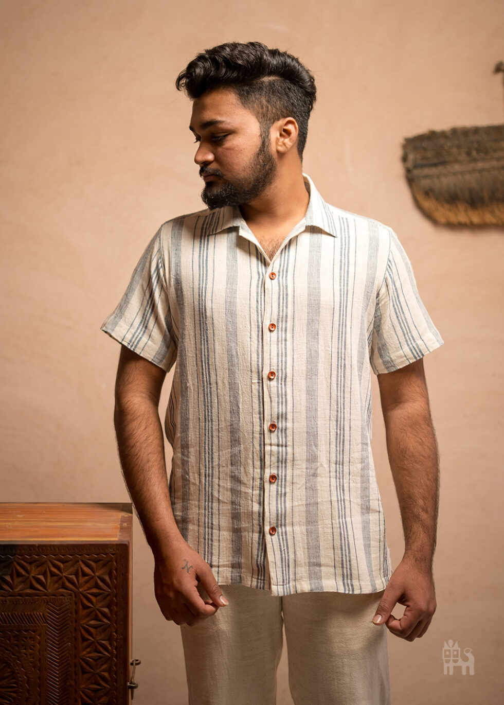 Designed with a relaxed, half-sleeve silhouette, the shirt effortlessly blends classic style with