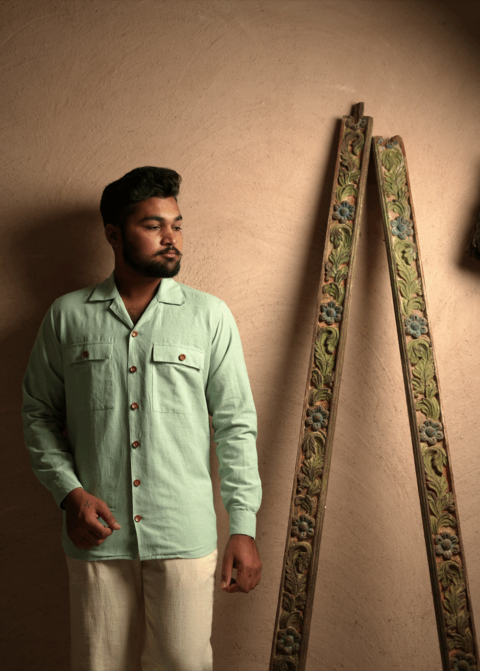 Features a soft pastel mint green hue, evoking Kutch’s tranquil landscapes